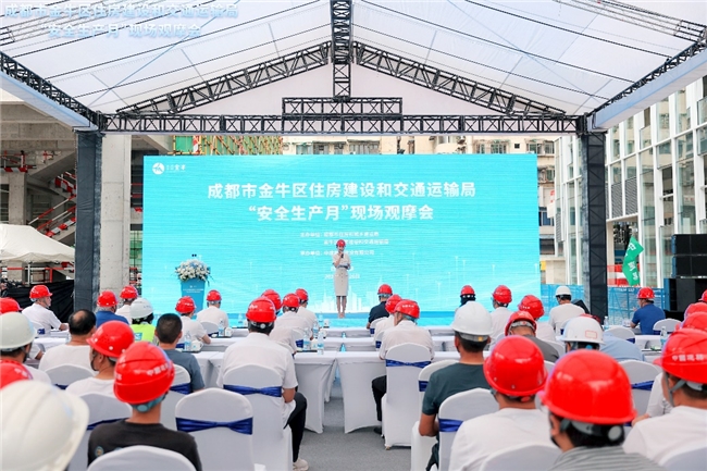 项目严格遵循建工“7416”安全管理体系,依托智能化平台强化责任落实,通过组建安全文明先锋队、制定应急预案、开展专项检查等措施,彻底排查安全隐患。2024年,项目承办成都市和金牛区“安全生产月”观摩活动,荣获国际安全奖及“国家级安全文明标准化工地”称号,得到了属地政府及业主高度认可。