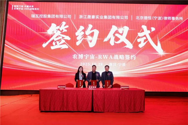· 数字筑基,重塑价值:晟豪集团随后携手瑞瓦控股集团、北京德恒(宁波)律师事务所,共同完成《晟豪集团产业升级数字融合发展战略合作签约》。该三方合作聚焦农业实体资产的数字化升级,是推动“农博宇宙”战略落地实施的关键一环,致力于突破传统农业壁垒,全面提升资产价值与流通效率。