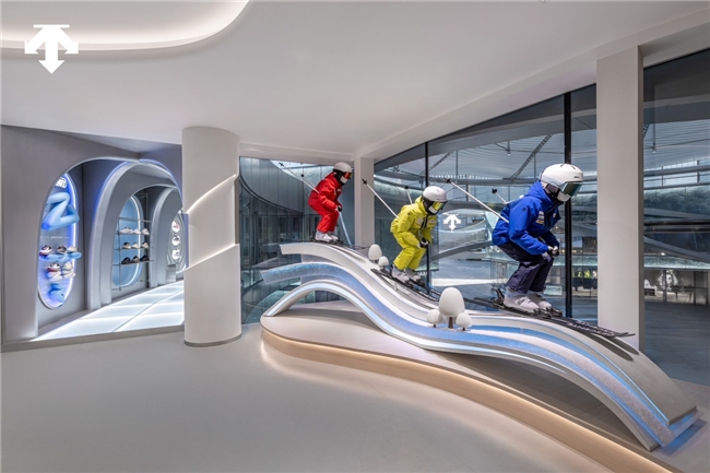 空间依循莫比乌斯环构成连续结构,首尾交织、步履不止。这一结构被拆解为四段精神路径:从全面展开,到精准聚焦,再至专业确立,最终归环至童真与传承。每一段空间皆对应着DESCENTE对动能调度、意志训练与结构秩序的不同理解。
