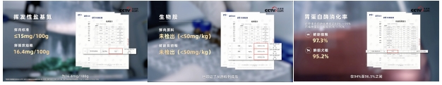 鲜朗建立的成品检测机制,覆盖生物胺、挥发性盐基氮、胃蛋白酶消化率等关键指标;数据显示,其挥发性盐基氮实测值为 16.4mg/100g,新鲜度接近鲜肉标准(≤15mg/100g),生物胺未检出,真正实现新鲜可查,品质可控;胃蛋白酶消化率高达94%-98%,显著提升营养吸收率;同时工厂通过ISO22000、FDA、BRCGS等多项国际安全认证,用权威背书筑牢品质防线。