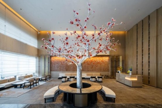 项目深挖在地文化底蕴,依托原址北京路书坊街的历史根基,确立“城央书坊”核心定位,将传统印刷匠艺、广府非遗、岭南建筑肌理与市花红棉符号融入空间设计,打造沉浸式艺文场景,让千年广府文化可感可触。希尔顿启缤精选作为希尔顿集团旗下生活方式品牌,主打个性在地化体验,与广州大厦的文化内核高度契合,为项目注入国际化设计与服务基因。