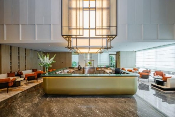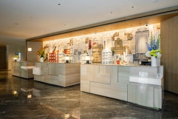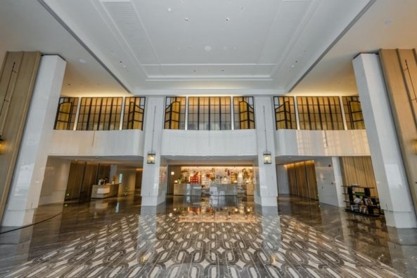 酒店大门以展开的书卷为造型,推门而入,仿若翻开一部厚重的城市文化典籍,温润的光影与雅致的书香扑面而来。