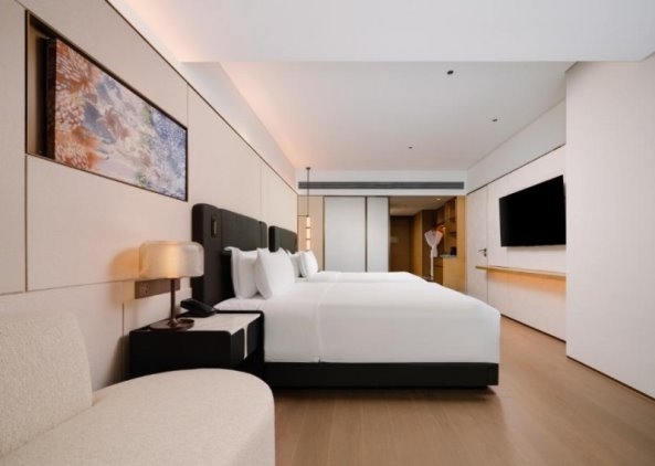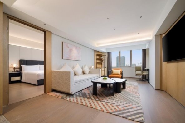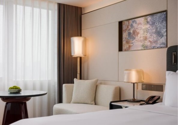 酒店拥有492间优化升级客房,依托越秀集团精细化改造能力,在空间扩容提质的基础上,兼顾舒适度与仪式感,布局借鉴版面设计思维,讲究疏密与留白,疏朗雅致、采光通透,彻底颠覆老旧酒店的局促感。房间内,触感柔软的床品贴合人体工学,搭配智能控光系统,可随心切换静谧休憩与高效办公模式;墙上木棉花装置灵感源自传统木刻版画,以不同盛放姿态为空间注入地域韵味,诠释“花影落窗中,映岭南多姿”的诗意意境。临窗而坐,可远眺北京路千年烟火,近赏岭南园林景致,在静谧雅致的氛围中,卸下旅途疲惫,感受广府文化的温润与惬意。依托越秀集团的全链条配套升级能力,广州大厦将打造覆盖旅居、餐饮、会务、休闲的全场景服务体系,全面补齐北京路片区高端服务短板,满足政务、商务、文旅全维度需求,让每一位宾客都能在细节中感受极致尊崇与舒适。