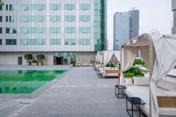酒店打造城芯松弛天地,24小时健身中心配备高端设备,可随心开启健身模式、释放压力;6楼高空室外泳池坐拥绝佳视野,白天沐光戏水,夜晚伴星光畅游,尽览老城繁华。此外,酒店规划静谧阅读与冥想角落,延续“城央书坊”气质,安放心灵与安宁。