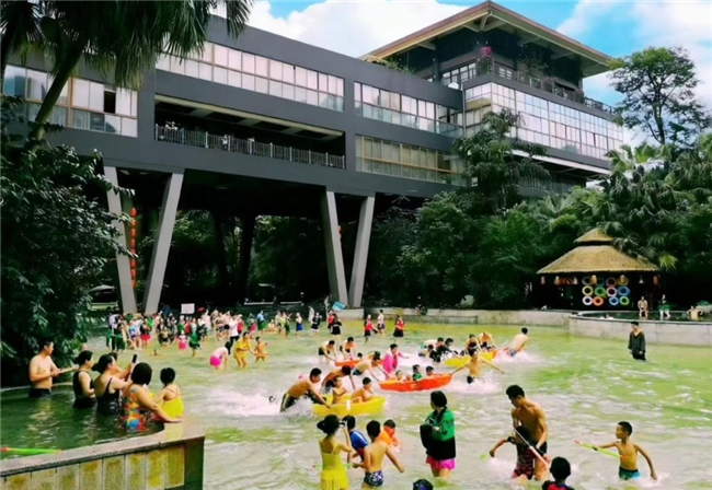 不同于市面上简单的“水池+建筑”商业组合,他全程主导天赐华汤森林温泉的设计,从建筑装饰、园林景观、到温泉汤池区的细节,都体现他的设计思想。天赐华汤森林温泉隐于金剑山下,远离城市喧嚣,泉水温润疗愈,亭台楼榭与山水花木相映,佳丽们集训间隙,漫步池边、静坐休憩,倩影与袅袅泉雾、层层绿意相融,活脱脱一幅自然与美学共生的诗意画卷,连集训都成了一场美学熏陶之旅。在这里,温泉不再是单纯的休闲设施,而是被赋予了文化内涵与美学灵魂的空间,这便是他对“温泉之美”的定义。