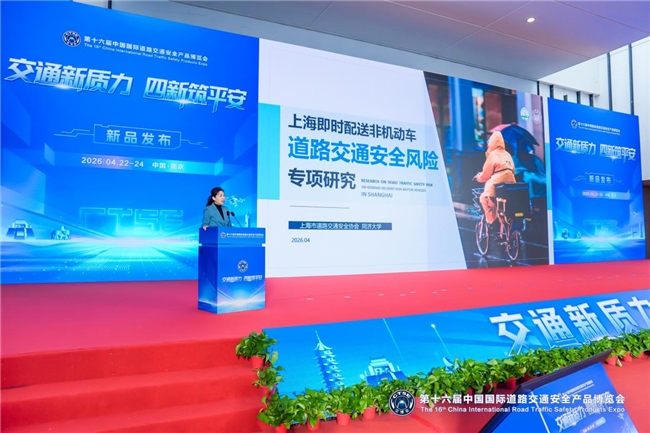(同济大学教授姚启明针对网约配送行业出现的交通安全问题,在现场发布《上海即时配送非机动车道路交通安全风险专项研究报告》。)